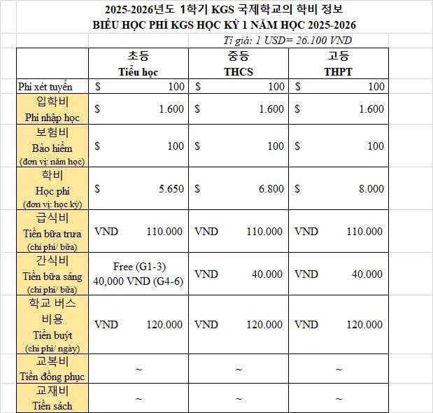 Năm 2025- 2026, nhà trường tiếp tục áp dụng mức học phí theo tỉ giá mới, đồng thời tăng cường cơ sở vật chất đáp ứng nhu cầu học tập tốt hơn cho các con
